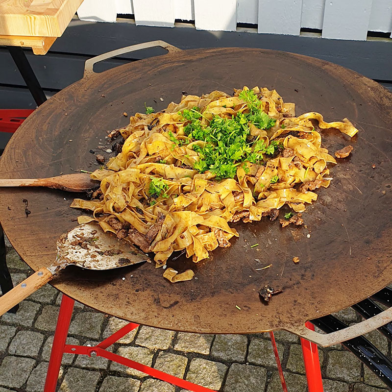 Oksefilepasta blandes på Timsfors Stegepande.