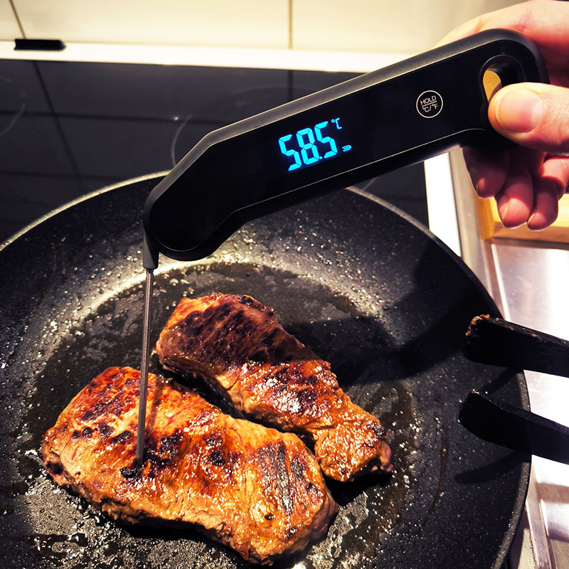 Tilbered mad med fuld kontrol med Bluegaz Instant Grilltermometer! Dette digitale grilltermometer med spids måler kødets kernetemperatur på rekordtid.