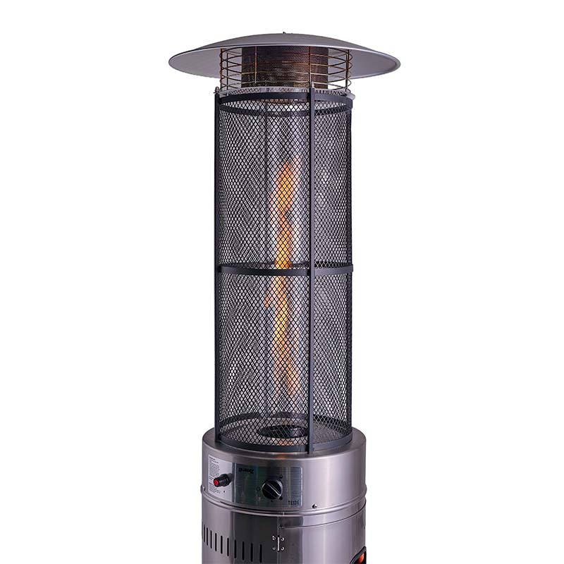 Skab en varm og hyggelig atmosfære på din terrasse med denne imponerende terrassevarmer! Elegante Teide er en fritstående gasvarmer, der producerer en fascinerende flamme, som skyder op i en spiral. Den smukke flamme er indkapslet i et glasrør og dækket af et beskyttende gitter.