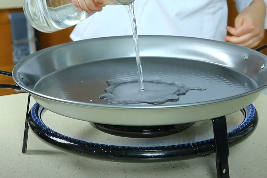 Før brug er det vigtigt at forberede paellapanden.